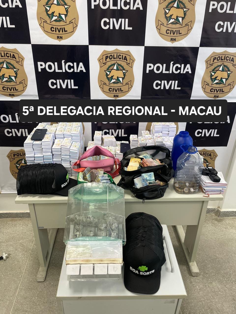 Policiais civis da 5ª Delegacia Regional (DR) de Macau, em ação conjunta com a Delegacia Especializada em Atendimento à Mulher (DEAM) de Macau e na 1ª Companhia Independente da Polícia Militar (CIPM), deflagraram, nesta quinta-feira (12), a Operação Má-Sorte, com o objetivo de combater a prática de loteria ilegal nas cidades de Macau e Guamaré, no litoral potiguar.