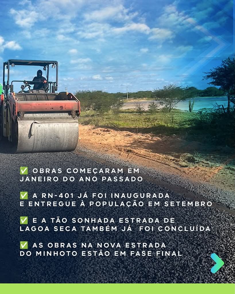 🚧 Guamaré está vivendo o maior investimento em infraestrutura rodoviária de toda a sua história: são mais de 20 km em estradas, incluindo a reconstrução completa da RN-401 e a construção das tão sonhadas estradas de Lagoa Seca e do Minhoto.