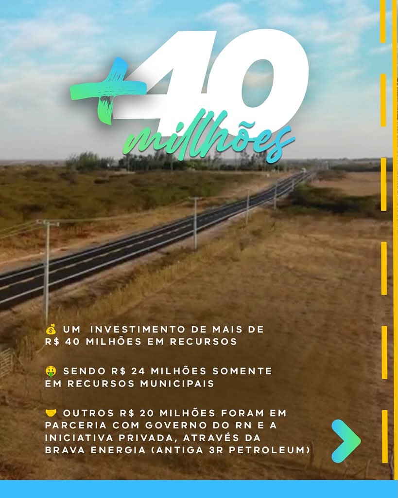 💰 São mais de R$ 40 milhões investidos — com recursos municipais, do Governo do Estado e da iniciativa privada. Através de uma parceria forte que foi fruto de uma inédita e extraordinária articulação política que está construindo estradas para o futuro.